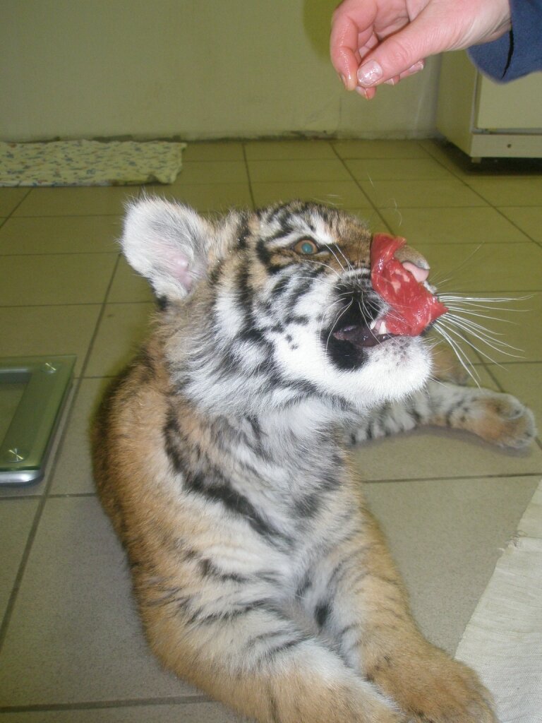 - Тигр, оказавшись у вас, как долго привыкал к вам? Наверное, первое время капризничал, не хотел есть?