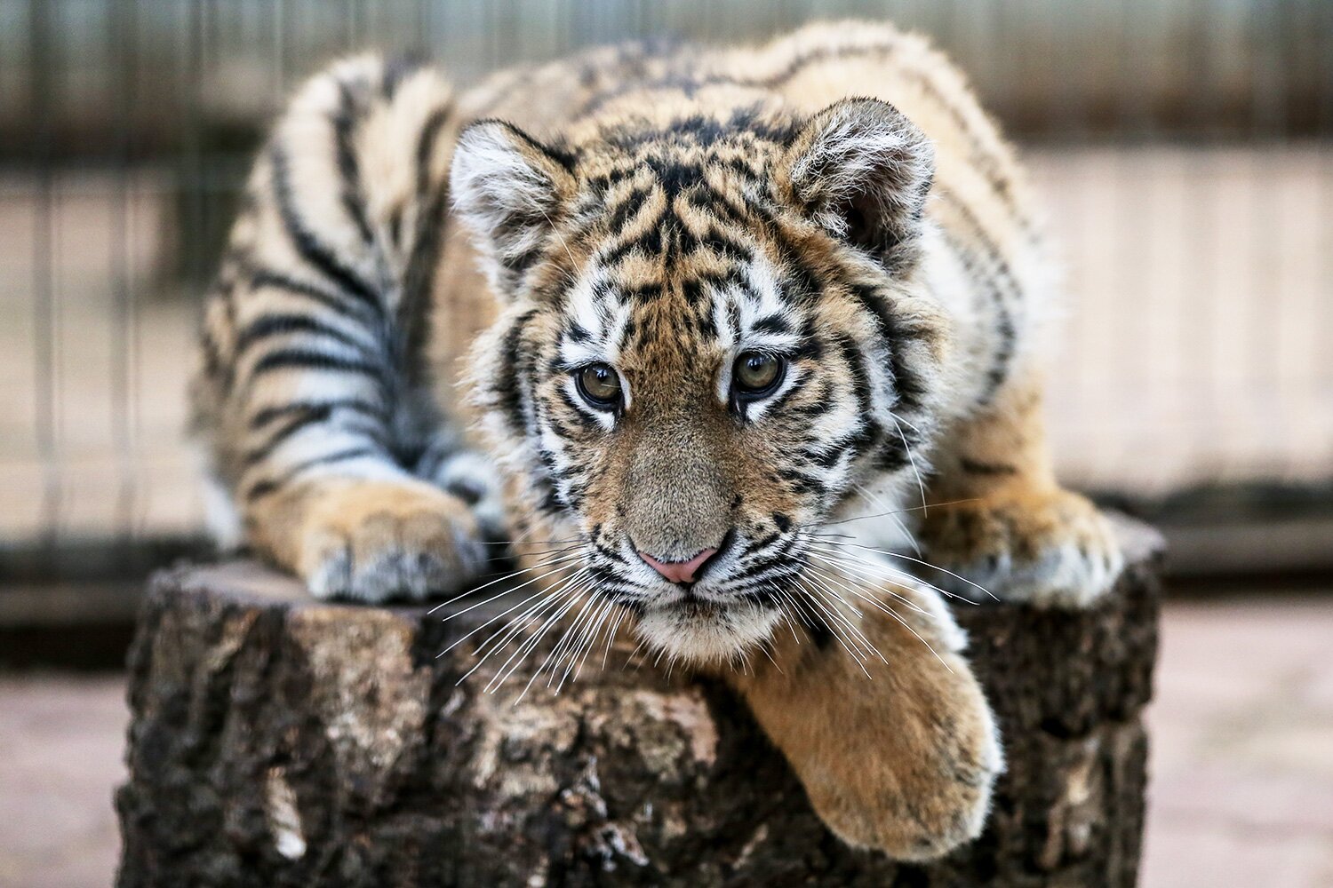 Теперь у тигренка есть имя, кров и даже семья. Подхожу к вольеру. Так и не скажешь, что перед тобой хищное животное, которое в 4-х месячном возрасте съедает до 10 килограммов мяса в день. Степан отдыхает, лениво подергивая хвостом.
