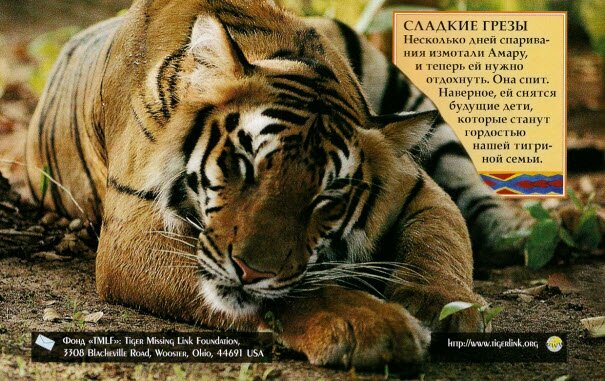 WWF, День Тигра, Екатеринбургский зоопарк, Жорик, заповедники Индии, заповедники России, Золушка, зоосад Приамурский, Клифф Грант, Московский зоопарк, Пензенский зоопарк, Рижский зоосад, Роев Ручей, Сказка, Специнспекция «Тигр», Тайга, Такома, Тамерлан, Тигрюля, Утёс, Фонд «Феникс»