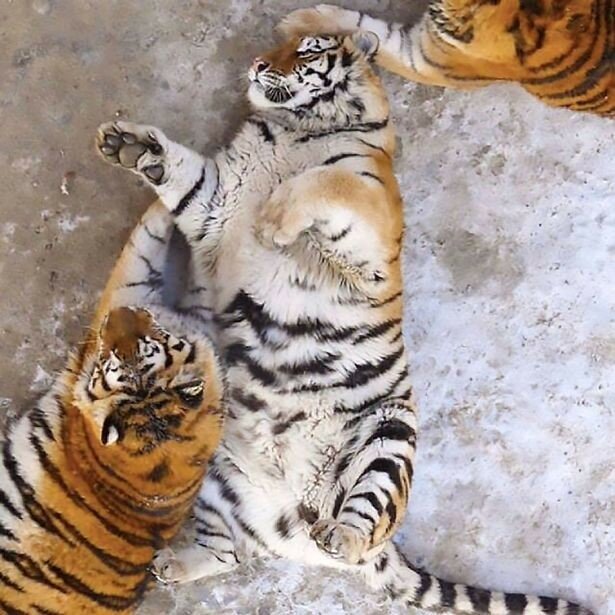 В сети появились необычные фотографии сибирских тигров из китайского природного парка в Харбине. Со снимков смотрят отнюдь не грациозные хищники, а «полосатые колобки». Пользователи соцсетей предположили, что тигры набрали лишний вес, празднуя китайский Новый год.