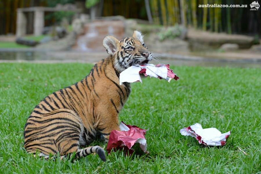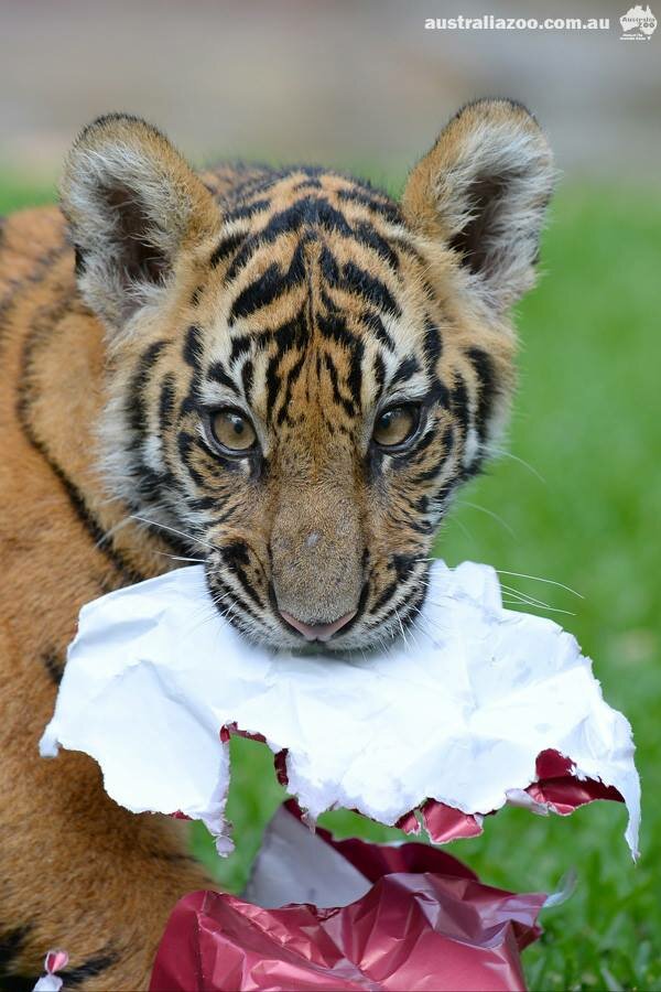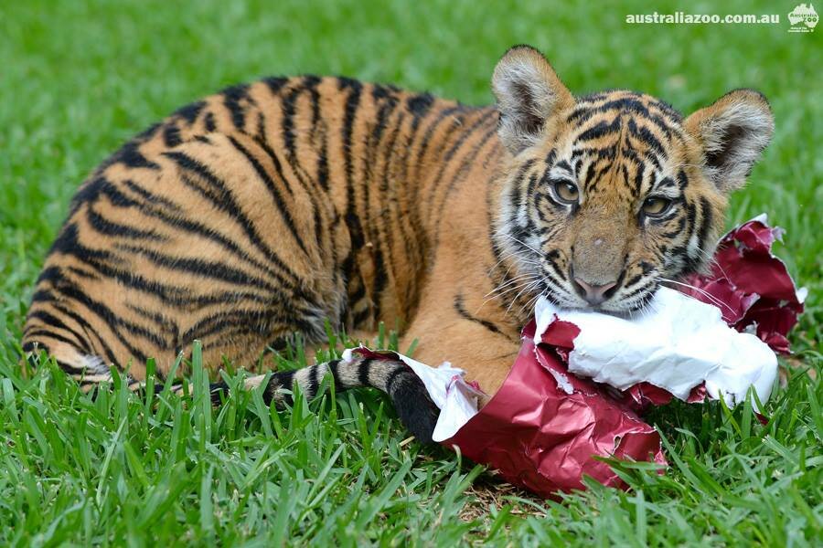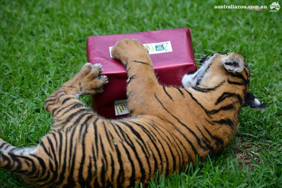 Первое в жизни Хантера и Кларенса Рождество подарило тигрятам огромное количество замечательных впечатлений, рассказывают сотрудники Зоопарка Австралии на своей страничке в Facebook. Ребята получили рождественские подарки, с которыми долго и самозабвенно играли. Хантер быстро расправился с красивой упаковкой и с гордостью продемонстрировал, как ему понравился каждый кусочек подарка, включая упаковочную бумагу!