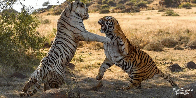 Такие сцены редко кто видел в живой природе, не говоря уже о том, чтобы сфотографировать. Две тигрицы подрались из-за территории. Королевская битва в динамике.