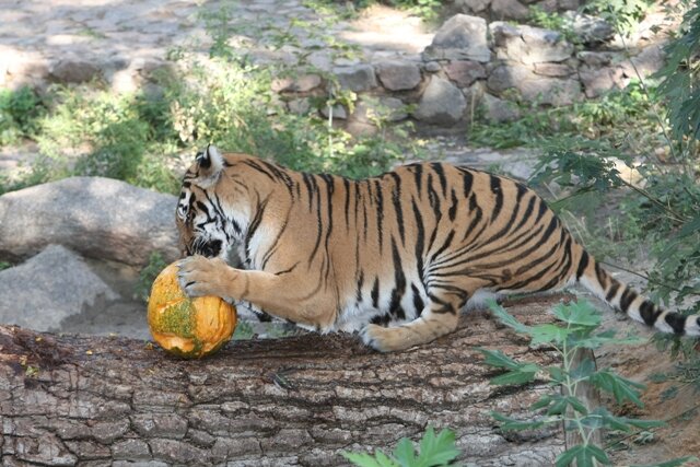 Екатеринбургский зоопарк проводит конкурс среди местных овощеводов на самую большую тыкву для тигров, сообщили в пресс-службе зверинца. Специалисты учреждения недавно выяснили, что тиграм очень нравится играть с этими большими овощами.