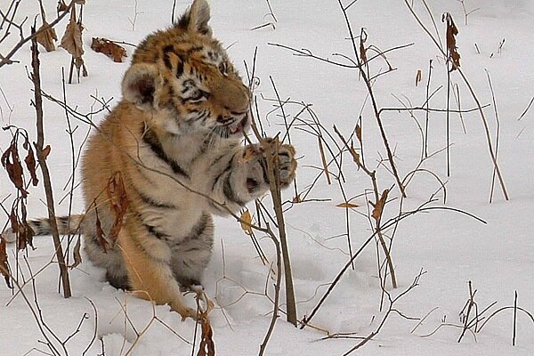 Сотрудникам Всемирного фонда дикой природы Китая и государственного заповедника Ванцин провинции Цзилинь впервые удалось получить видеозапись, на которой запечатлена самка амурского тигра с котятами в дикой природе.Ее получили с помощью инфракрасной фотоловушки более чем в 30 километрах от российско-китайской границы.