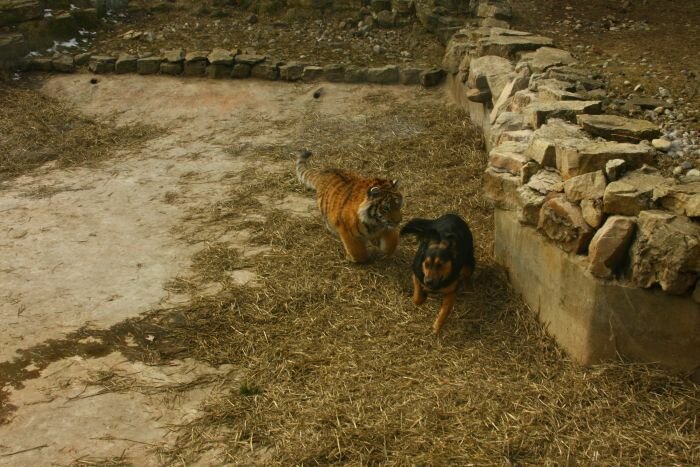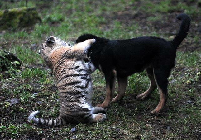 Смотрите, как весело играют вместе тигрёнок и собака!