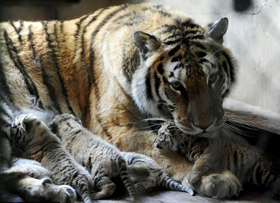 Амурская тигрица, которая обитает в заповеднике на северо-востоке Китая, родила пятерых тигрят, сообщает в четверг агентство Синьхуа.